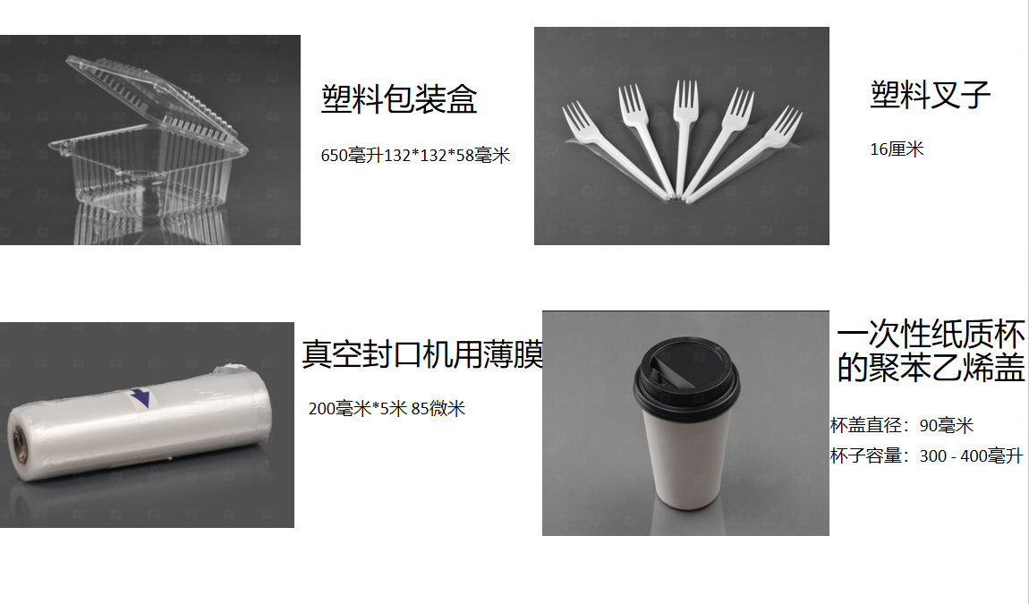 该企业意向在中俄边境地区(黑龙江、吉林、内蒙古等地) 寻找合作生产厂家,计划采购一批包装及餐具类产品,主要需求包括: