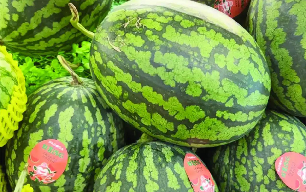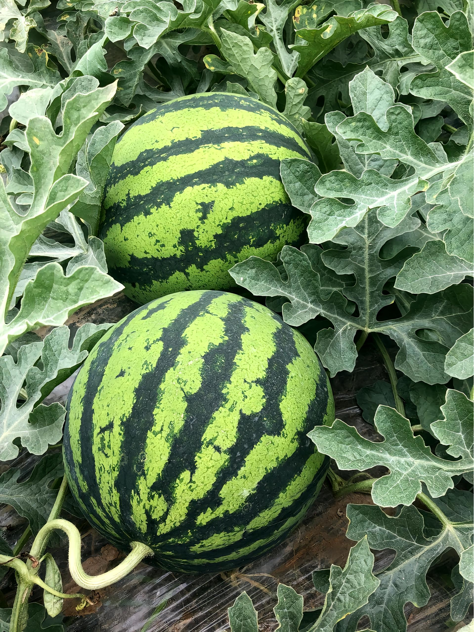果实外观:果实多为椭圆形,单果重量4-6kg。底色翠绿,覆深墨绿条纹,果面光滑无棱沟。